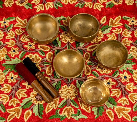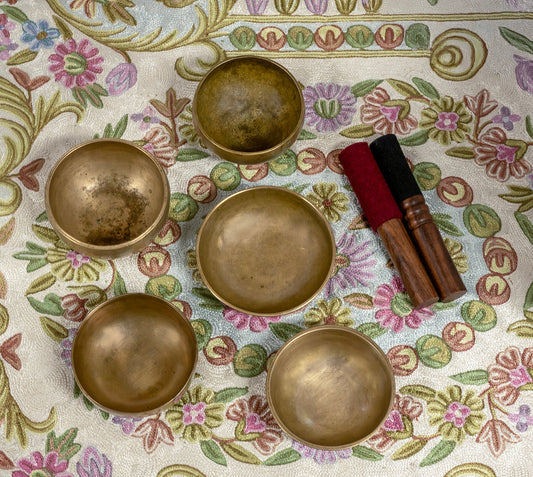 Rare Antique Cup Singing Bowl Set – 432Hz Scale with 4th and 5th Octave Bowls - AS16145