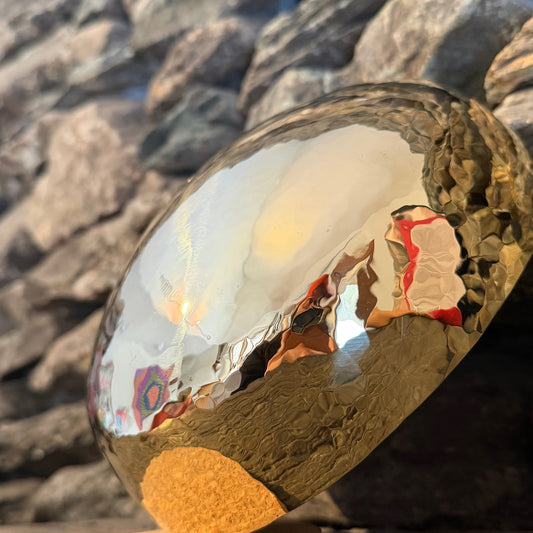 Martin Bläse cold forges all his bowls. Unlike Nepalese and Tibetan bowls, which are fire forged, Martin strikes the metal without heat. This makes each bowl incredibly laborious. He uses a dug out block of wood to forge each size bowl into the the proper shape before final tuning. Each bowl is struck thousands of times in two sections, first the form, then the tuning.