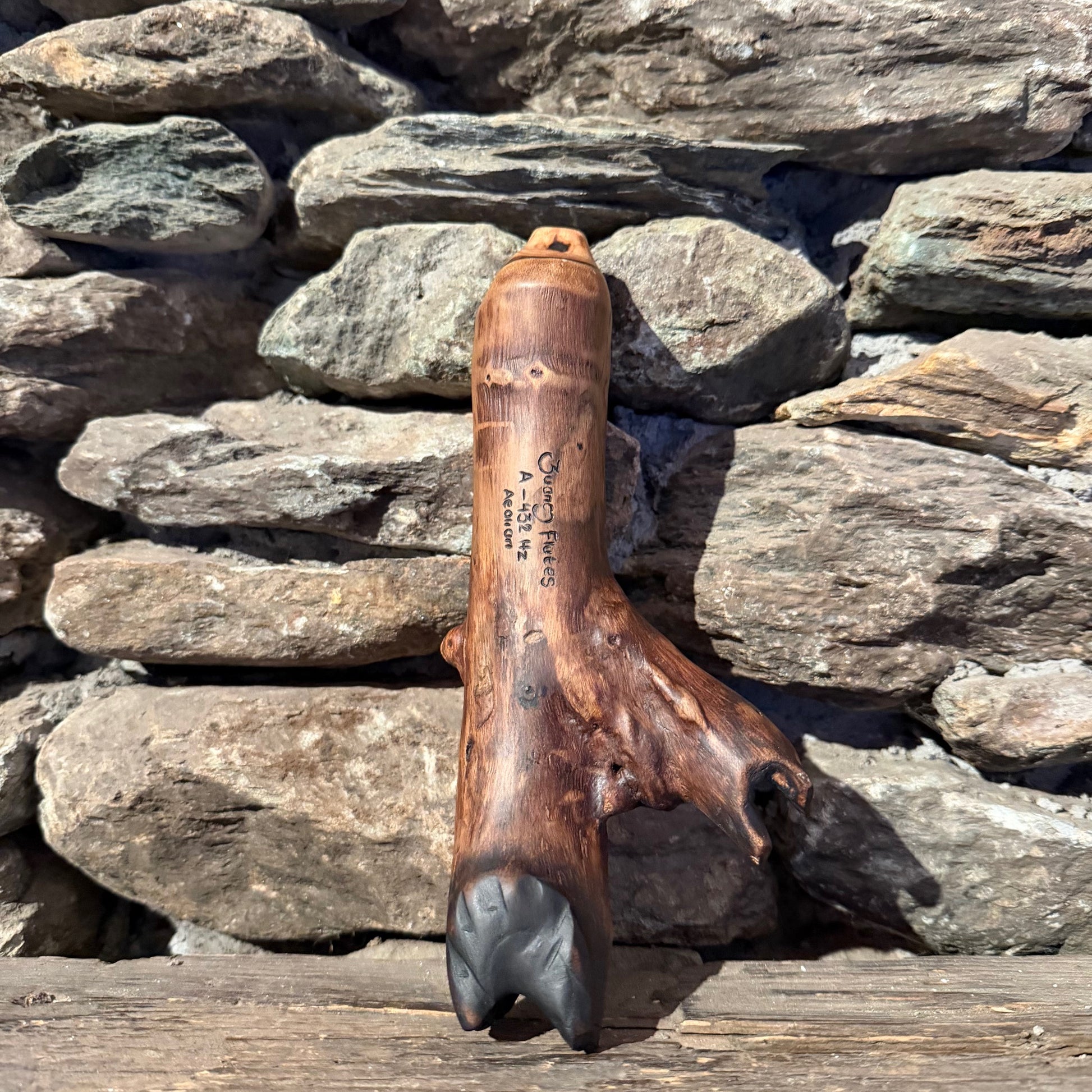Crafted from teak root, this ocarina embodies centuries of spiritual reverence across Eastern traditions. Teak's natural oils and inherent durability have long made it the material of choice for sacred spaces—from Hindu temples to meditation altars. Beyond its aesthetic appeal, teak is believed to ground energy, dispel negativity, and cultivate inner tranquility. Tuned to the harmonically resonant 432 Hz frequency, this instrument merges ancient craftsmanship with intentional sound healing, creating a vessel for spiritual practice, mindfulness, and the restoration of energetic balance within your sacred space.