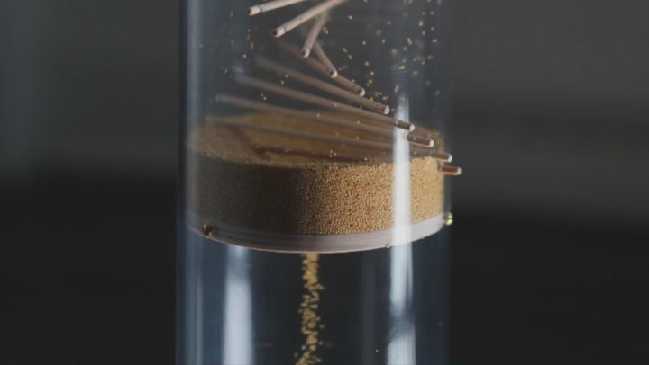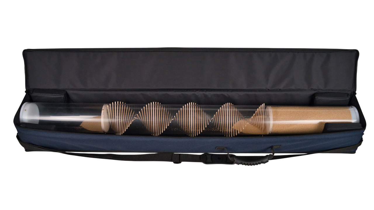Take a chance and indulge in the power of Amaranth Seed Large Rainstick, measuring 49 inches in length. This top seller is for those who crave adventure and don't mind taking a risk. Each rainstick is carefully crafted to order and takes 2-4 weeks for delivery. The soothing sound of gentle rain can transform any intimate setting or serve as a pleasing background to everyday life. Let the thrill begin as 2 million organically grown amaranth seeds cascade down the spiral, filling the air with a calming rain sound for 10 minutes. While it can stand on its own, we recommend our Large Stands (sold separately) for added safety. As always, Noah handcrafts each rainstick with a unique serial number, adding to its exclusivity. Made with amaranth, plastic tube, birch dowels, plywood circles, plastic caps, and metal, this rainstick weighs 5 pounds and measures 3 1/2" x 49