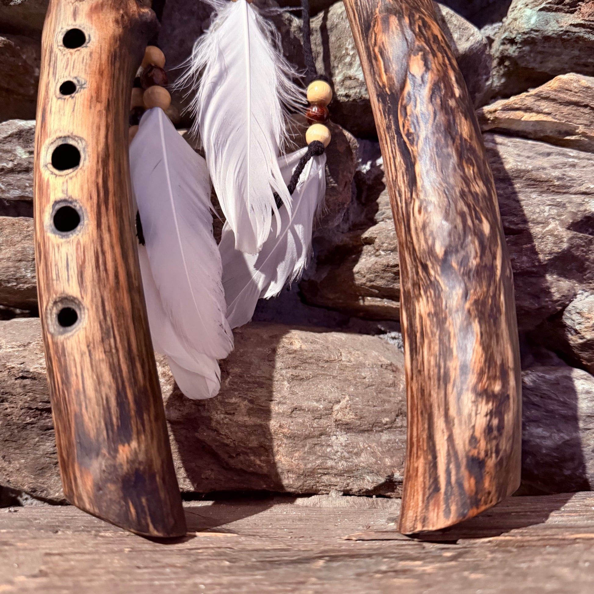 This teak wood drone flute doesn't whisper—it commands. Tuned to 432 Hz in the B-Locrian mode, it cuts through mental noise with unflinching intensity. Teak, the wood of Hindu temples and sacred sanctuaries, carries centuries of spiritual authority. Its natural oils and uncompromising durability have absorbed the devotion of countless practitioners seeking to dismantle illusion and access raw truth. The Locrian mode's dark, introspective frequencies paired with sustained drone work create a sonic crucible for transformation—not gentle meditation, but deliberate spiritual excavation. This is an instrument for those ready to confront their depths, dissolve stagnant energy patterns, and rebuild consciousness on a foundation of unshakeable stability. Bold, unapologetic, and profoundly grounding.