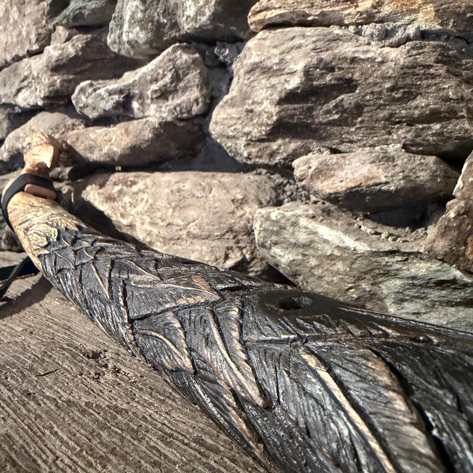 This distinguished 28" carved eagle flute, fashioned from premium teak wood and tuned to 432Hz, represents a convergence of artisanal craftsmanship and spiritual intention. Teak's revered status in Eastern spiritual traditions stems from its natural capacity to purify environments and anchor consciousness—qualities enhanced by the instrument's resonant frequency, known to promote deep meditative states. The wood's inherent durability and rich oils create an ideal foundation for sacred practice, while the eagle carving symbolizes vision, strength, and spiritual ascension. Ideal for sound healing, ceremonial work, or contemplative exploration, this flute channels both the grounding properties of teak and the elevating vibrations of 432Hz to facilitate profound inner transformation and sustained tranquility.