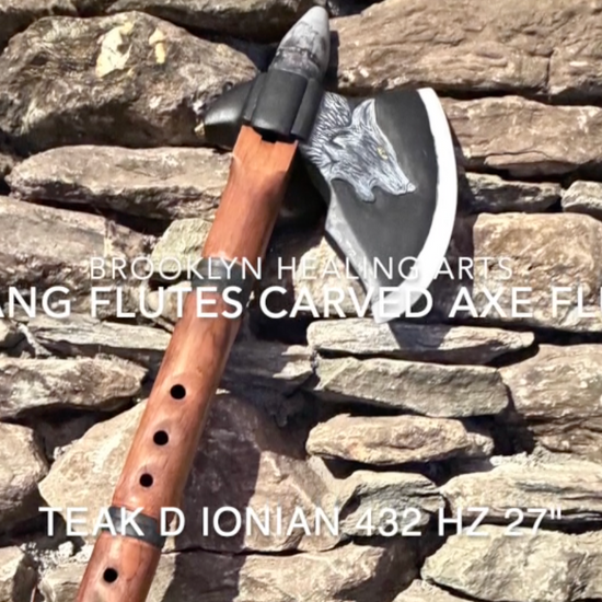 This commanding 20" teak flute, carved with Nordic wolf imagery and tuned to D-Ionian Modal Scale at 432 Hz, bridges primal power with contemplative depth. Teak's revered status across Eastern spiritual traditions reflects its capacity to ground transformative energy and dissolve mental obstruction. The wood's natural oils and exceptional durability have made it the material of choice for sacred spaces dedicated to meditation and spiritual awakening. The wolf carving invokes ancient Northern traditions—symbolizing intuition, loyalty, and the integration of shadow and light. D-Ionian's major tonality creates an expansive, luminous harmonic foundation that invites both joy and introspection. At 432 Hz, this instrument facilitates profound energetic alignment and spiritual recalibration. A substantial tool for practitioners seeking to access primal wisdom, establish unshakeable grounding, and honor the convergence of Eastern contemplative traditions with Northern shamanic power.