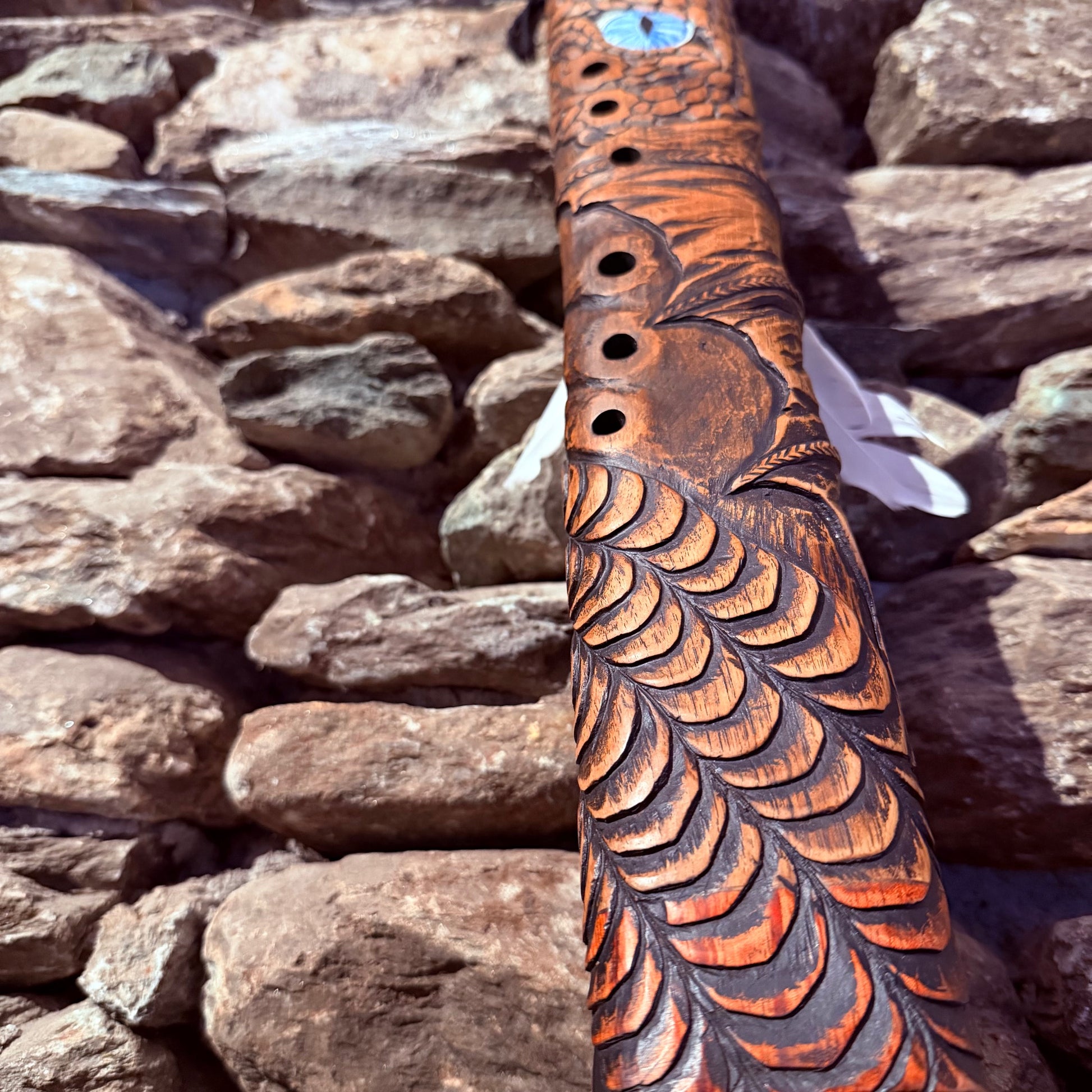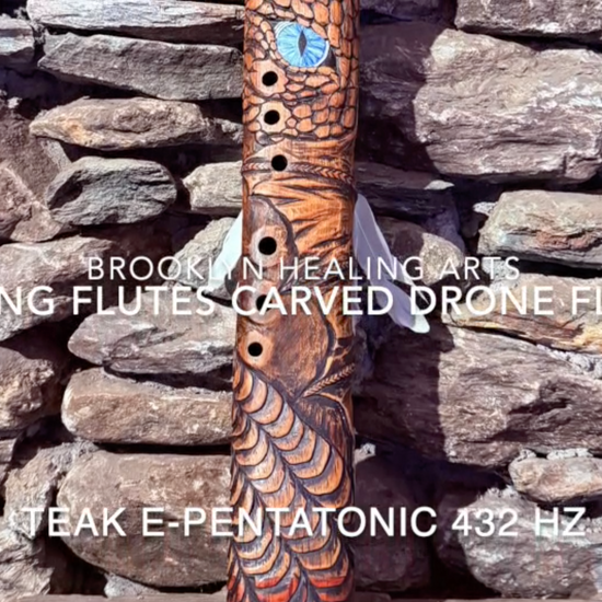 This 24-inch flute merges the mystical symbolism of the dragon with the transformative power of sound. Across cultures, dragons embody profound archetypal forces—from Eastern traditions where they represent wisdom, benevolence, and mastery over elemental realms, to Western lore where they symbolize untamed power and the threshold between worlds. Carved into teak and tuned to 432 Hz in the E-Minor Pentatonic scale, this instrument channels the dragon's essence as a guardian of spiritual awakening and inner transformation. The flute's resonant frequency and meditative tuning create a sacred bridge between intention and sound, inviting practitioners to access deeper states of consciousness while honoring the dragon's timeless association with wisdom, protection, and transcendent change.