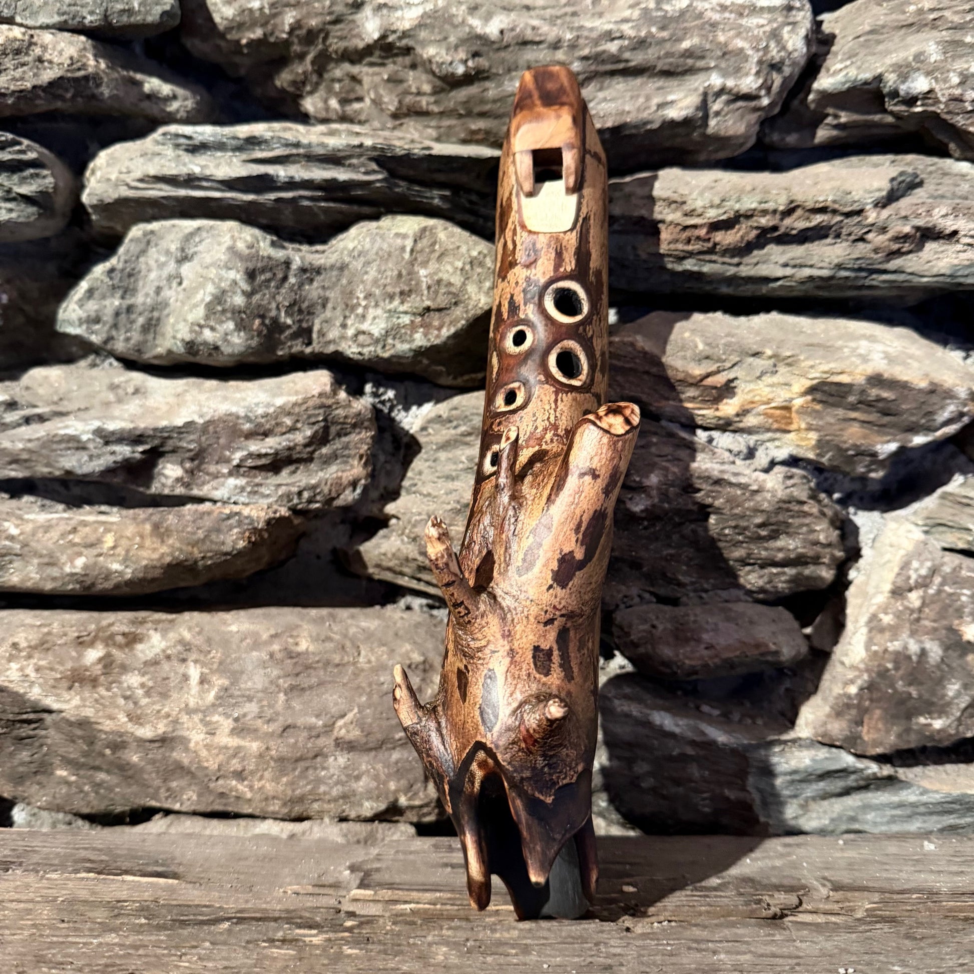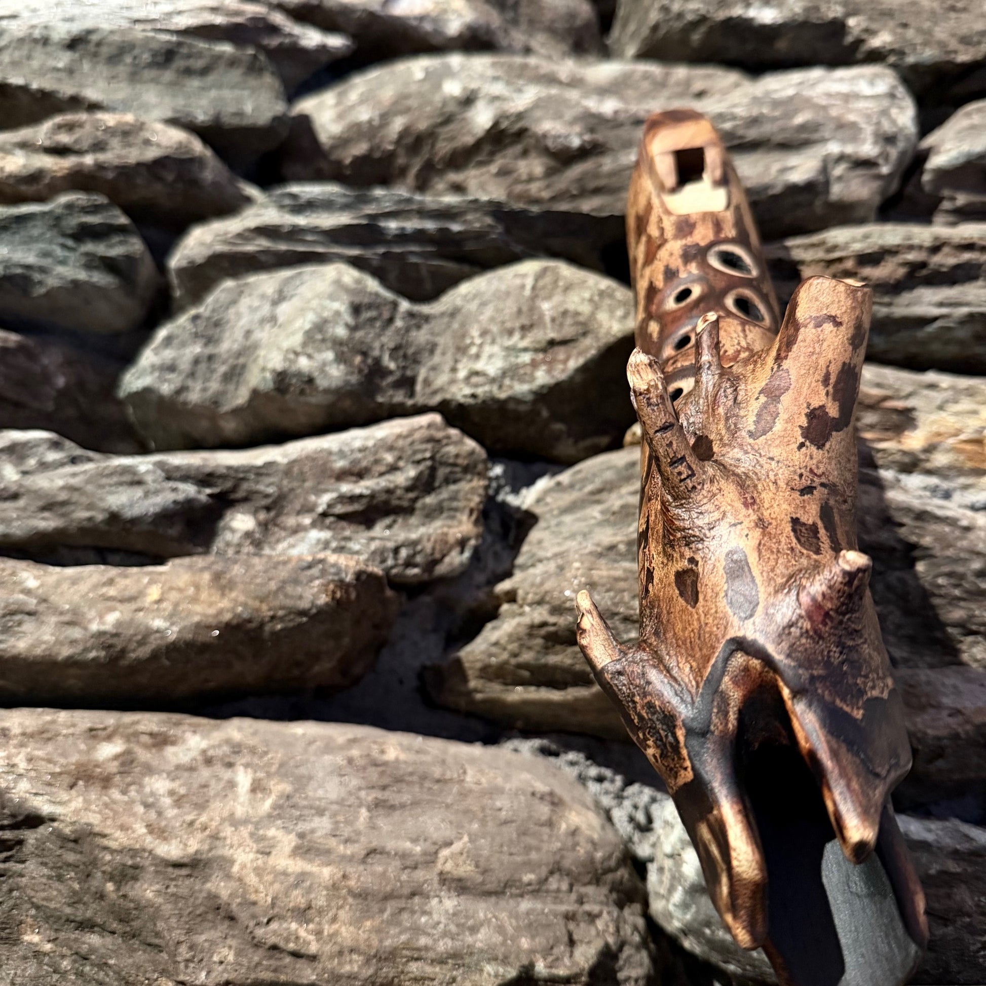 Discover profound sonic depth with this 12" acacia root ocarina, precisely tuned to F#-Minor Pentatonic at 432 Hz. Acacia wood, treasured throughout Eastern spiritual traditions, brings exceptional grounding qualities and natural resonance that support meditative states. The F#-Minor Pentatonic tuning unfolds an introspective harmonic landscape—emotionally rich yet accessible—inviting practitioners into genuine stillness. Vibrating at 432 Hz, this instrument facilitates energetic recalibration and spiritual alignment while acacia's inherent properties anchor consciousness in the present moment. Refined in appearance yet commanding in presence, it serves as a sophisticated companion for deepening contemplative practice, fostering emotional equilibrium, and building a steadfast foundation for sustained inner development. Equally at home on a personal altar or meditation sanctuary.