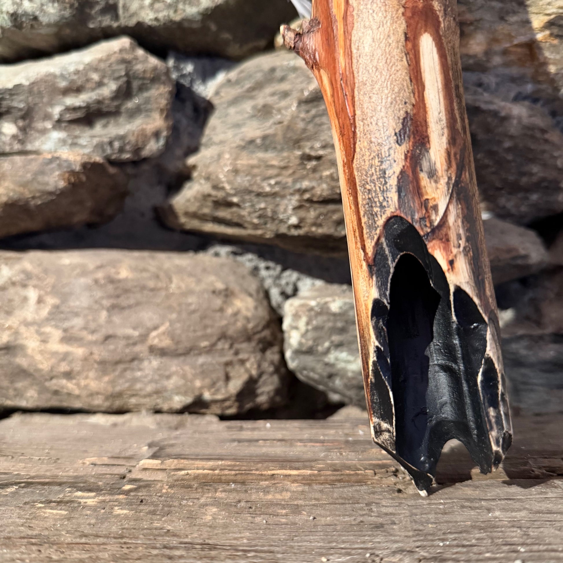 Crafted from acacia wood, this 21.5" forest flute embodies centuries of spiritual significance. Revered across traditions for its symbolic connection to purity and resilience, acacia serves as a conduit between the material and transcendent realms. The wood's inherent strength provides a grounding foundation for spiritual practice, while its natural properties support intention-setting, protection, and deepened awareness. Tuned to the G-minor pentatonic scale at 432Hz, this instrument harmonizes ancient wisdom with contemporary healing frequencies, inviting both sonic and energetic transformation into your practice.