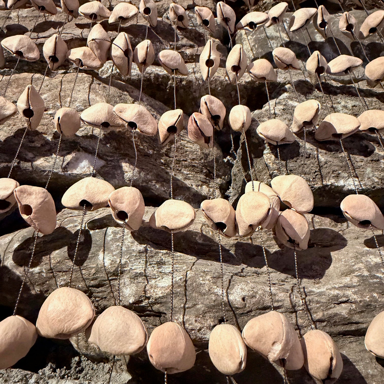 Featuring 168 meticulously arranged Kenari seeds on an expansive 20-inch frame, this rattle embodies refined craftsmanship and acoustic excellence. Kenari seeds yield crystalline, penetrating tones that resonate with clarity and presence, making this instrument a distinguished addition to any sound healing or ceremonial practice. Its generous proportions ensure optimal projection and tonal depth.