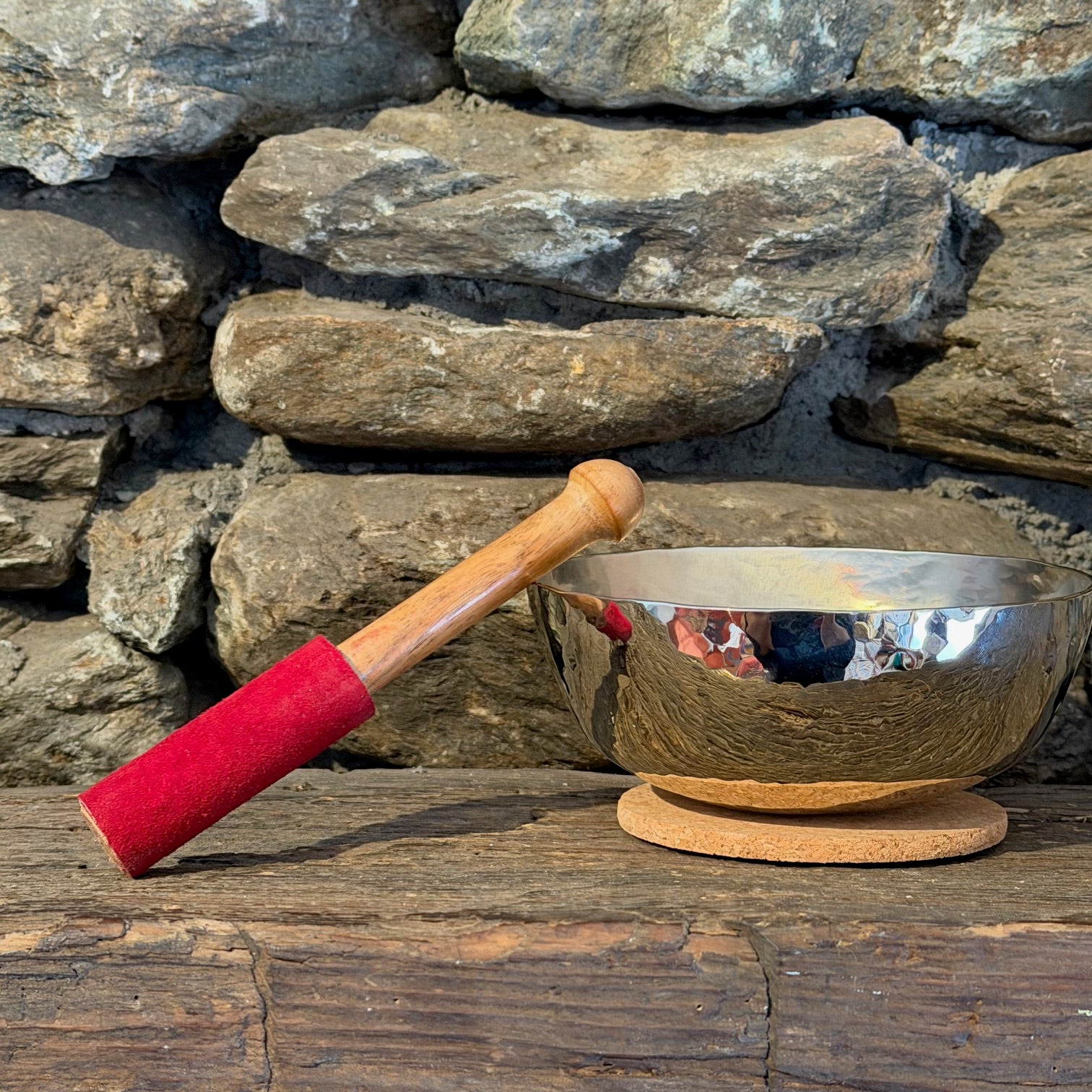Includes: Bowl, Leather Bound Mallet, and Cork Base
