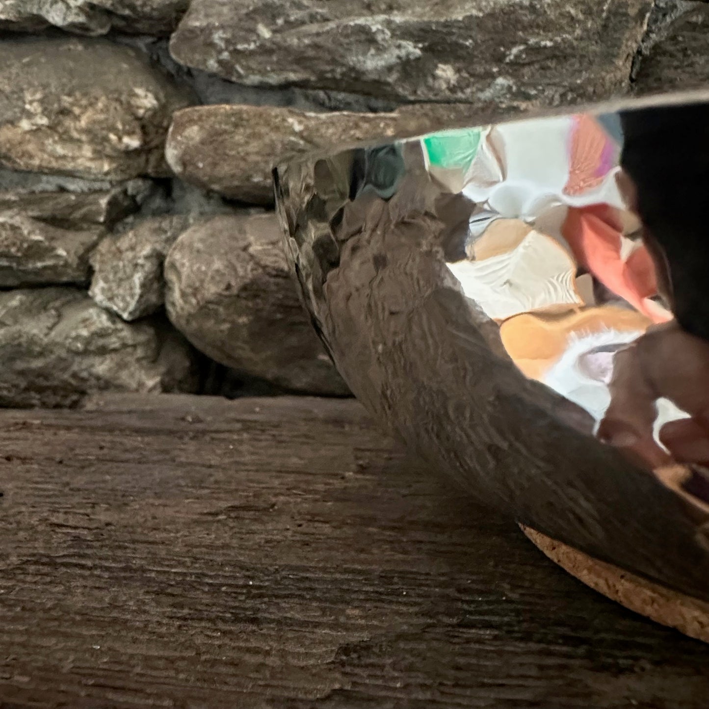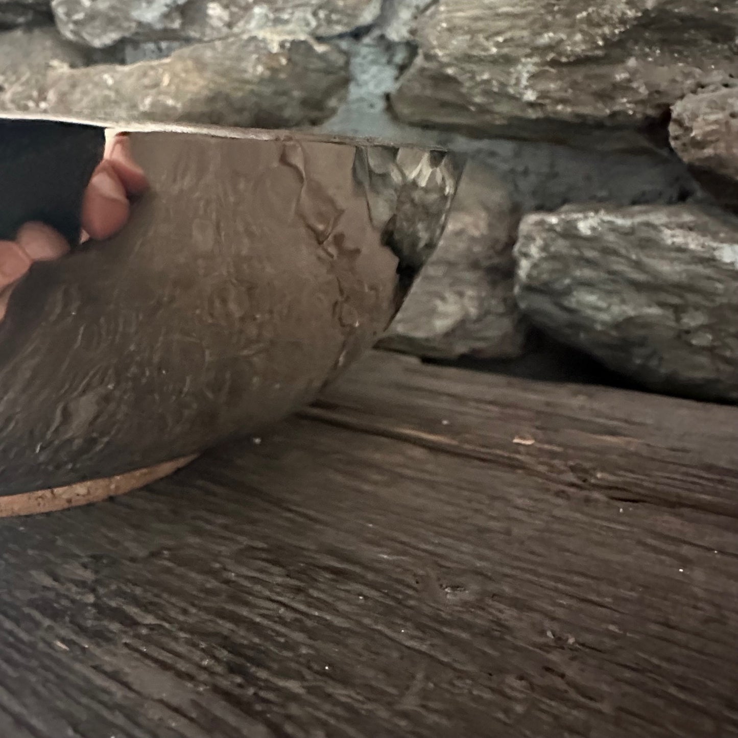 Martin Bläse cold forges all his bowls. Unlike Nepalese and Tibetan bowls, which are fire forged, Martin strikes the metal without heat. This makes each bowl incredibly laborious. He used a dug out block of wood to forge each size bowl into the the proper shape before final tuning. Each bowl is struck thousands of times in two sections, first the from, then the tuning.