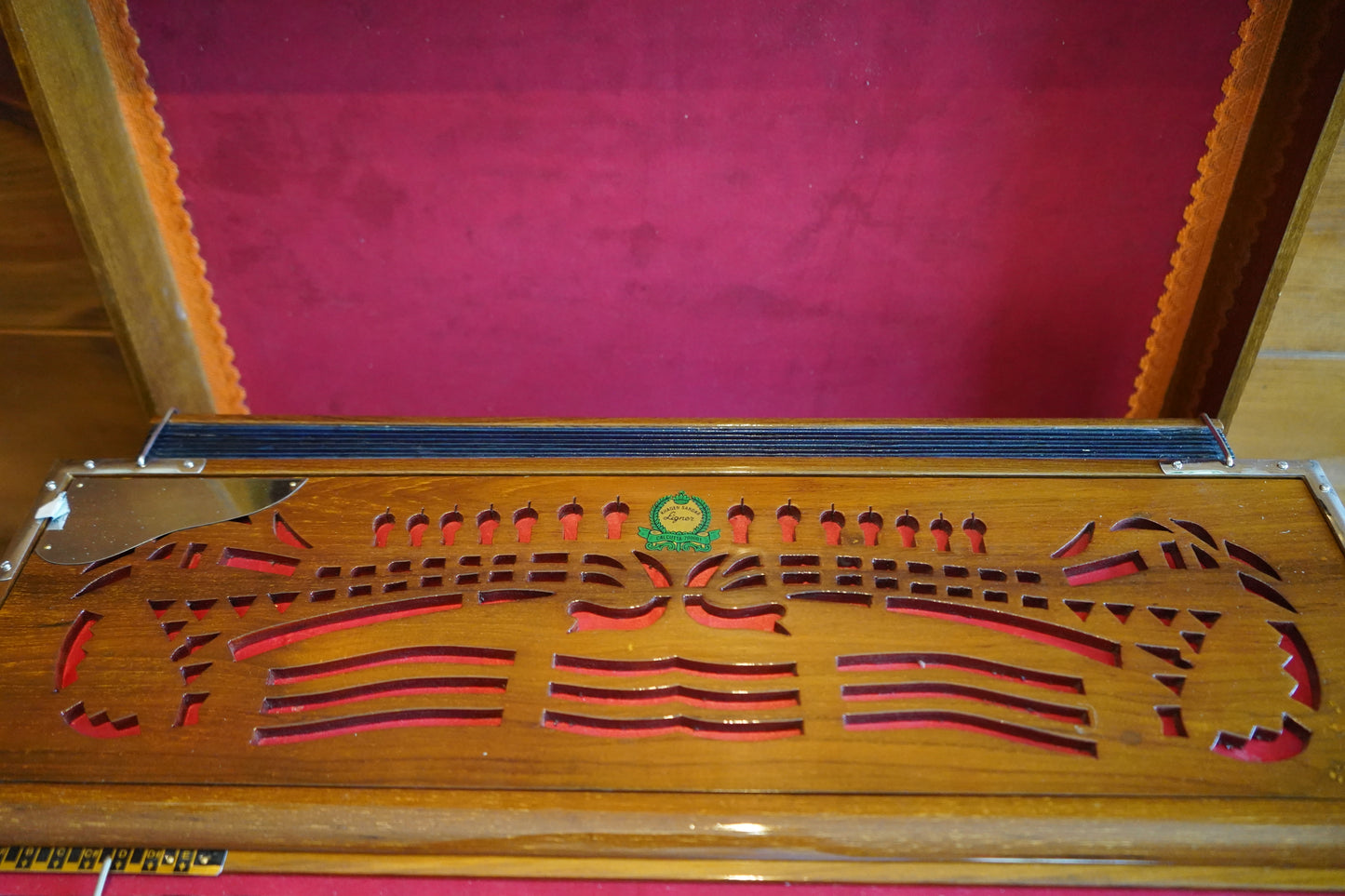 Please ensure the packaging of the harmonium is opened to allow for proper airing and tuning. Additionally, it is highly recommended to store the instrument away from excessive heat or moisture. The package includes a folding teak wood harmonium with dimensions of 23 x 14.5 x 11 Inches when open and 23 x 14.5 x 7 Inches when closed.