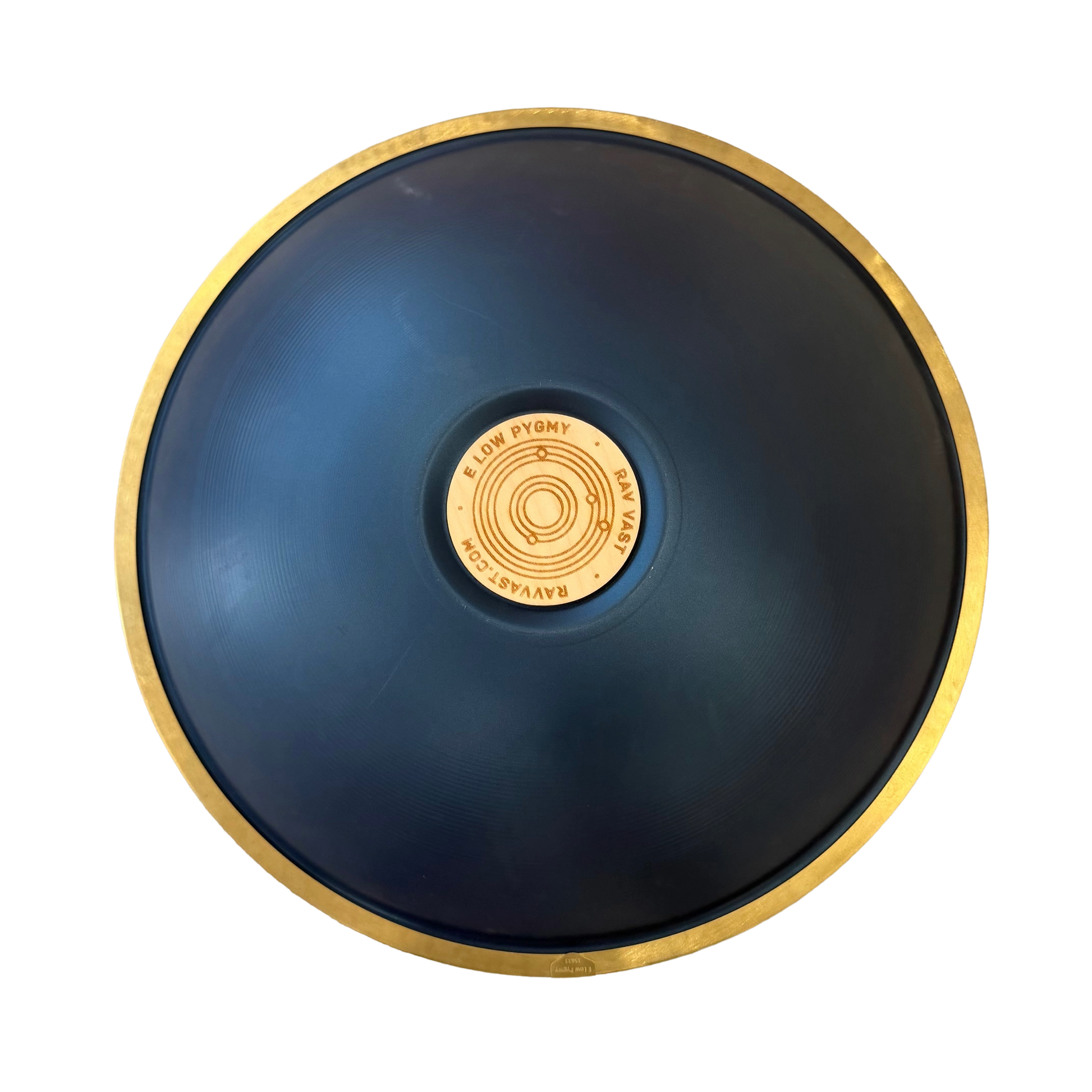 The RAV Vast E Low Pygmy is a handcrafted steel tongue drum engineered for contemplative sound work and musical exploration. This instrument produces rich, resonant tones that evoke meditative and introspective states. Its construction draws from African musical traditions, delivering a warm, mysterious character suited for solo performance or ensemble play alongside complementary scales like D Celtic Minor or A Integral. Weighing 5.3 kg with a 50.8 cm diameter, the drum accommodates both novice and experienced players using fingers or mallets. This pre-owned example offers an accessible entry point to the RAV instrument family for practitioners seeking authentic, grounded sound for healing work and spiritual practices.