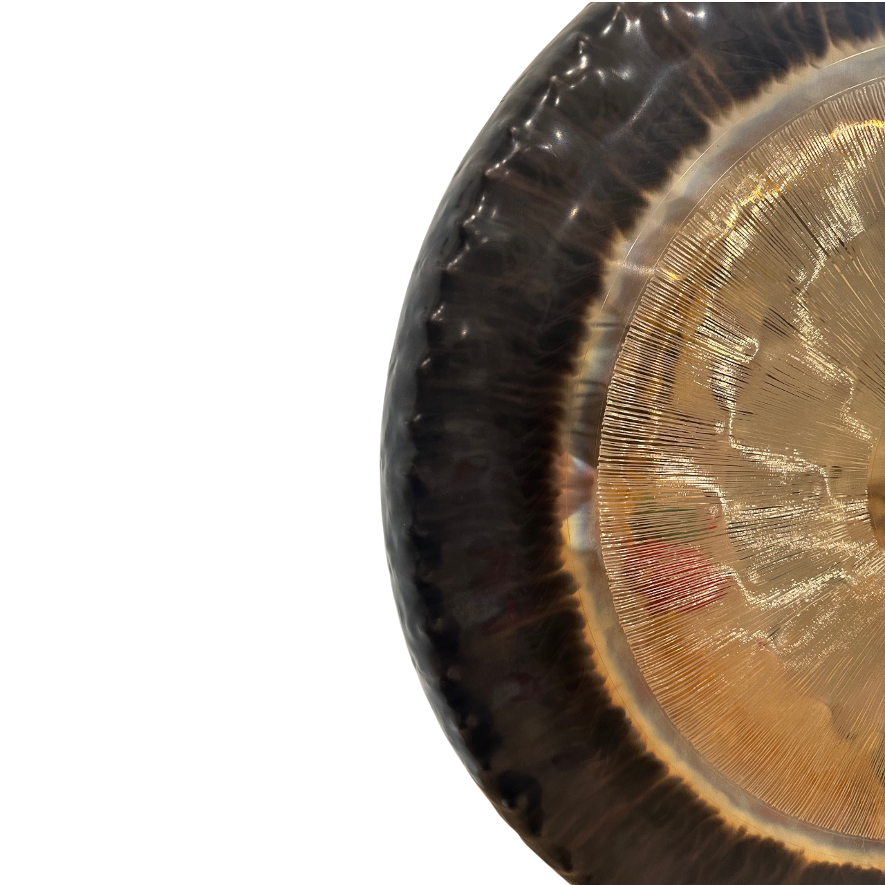 Experience the exceptional artistry of Ryan Shelledy's 24" Sun Gong "Sköll," expertly handcrafted in the USA. This remarkable instrument produces a rich array of harmonics and deep reverberations, offering vibrant and dynamic tones that respond with remarkable clarity. Its powerful sound fills any environment, providing an unparalleled auditory experience that resonates with both subtlety and intensity.