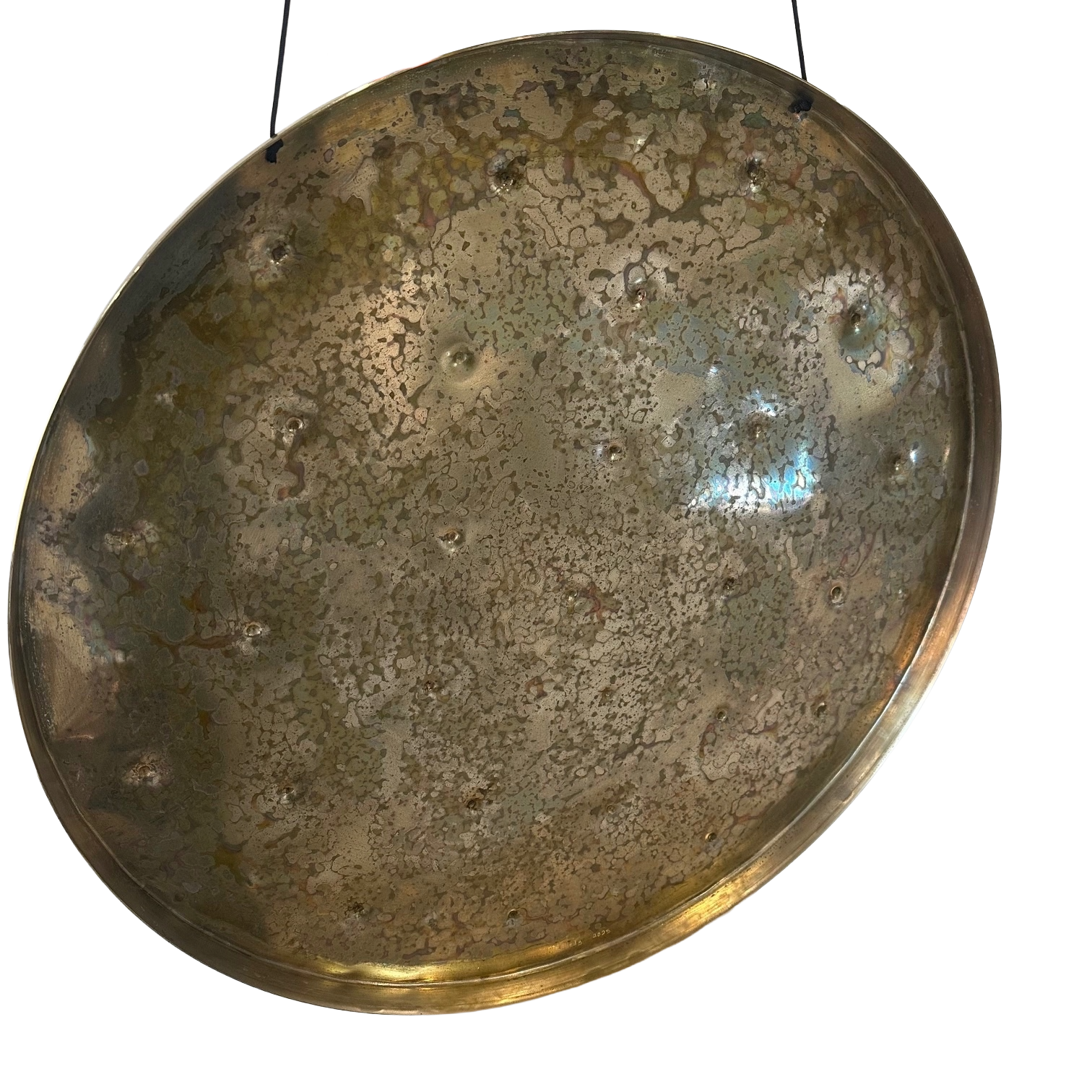 The Ryan Shelledy 30” Earth Gong “Starcrusher” is an enigmatic instrument, inviting profound introspection and transformation. It challenges conventional perceptions by prompting us to let go of preconceived notions and embrace the present moment fully. Through its evocative sound, it guides a journey inward, encouraging the dissolution of ego and the emergence of greater awareness. This gong not only produces captivating tones but also serves as a catalyst for deep meditation and personal growth, inviting listeners to become more by embracing simplicity and surrender.