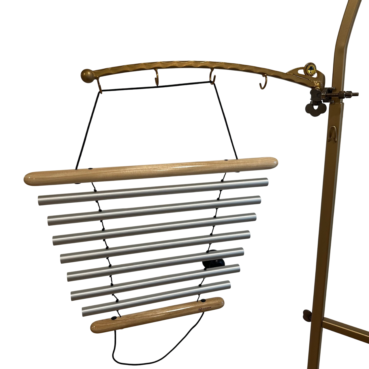 The Extension Arm for Tone of Life Gong Stands offers a practical solution for conveniently hanging mallets, chimes, small gongs (up to 26″/62cm), or other instruments used in sound sessions. Specifically designed to fit TOL Single to Double and Double Square stands, this accessory may also be compatible with similarly sized stands from other manufacturers, though this has not been verified. Please note, the price includes only the arm, without any gongs or instruments shown in the images.